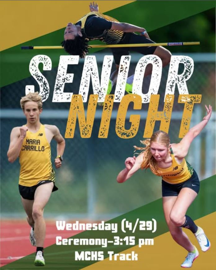 We look forward to honoring our Track & Field SENIORS at our last dual meet. All MCHS athletes (and senior parents) report to the field by 3pm so we can give them the congrats they deserve!